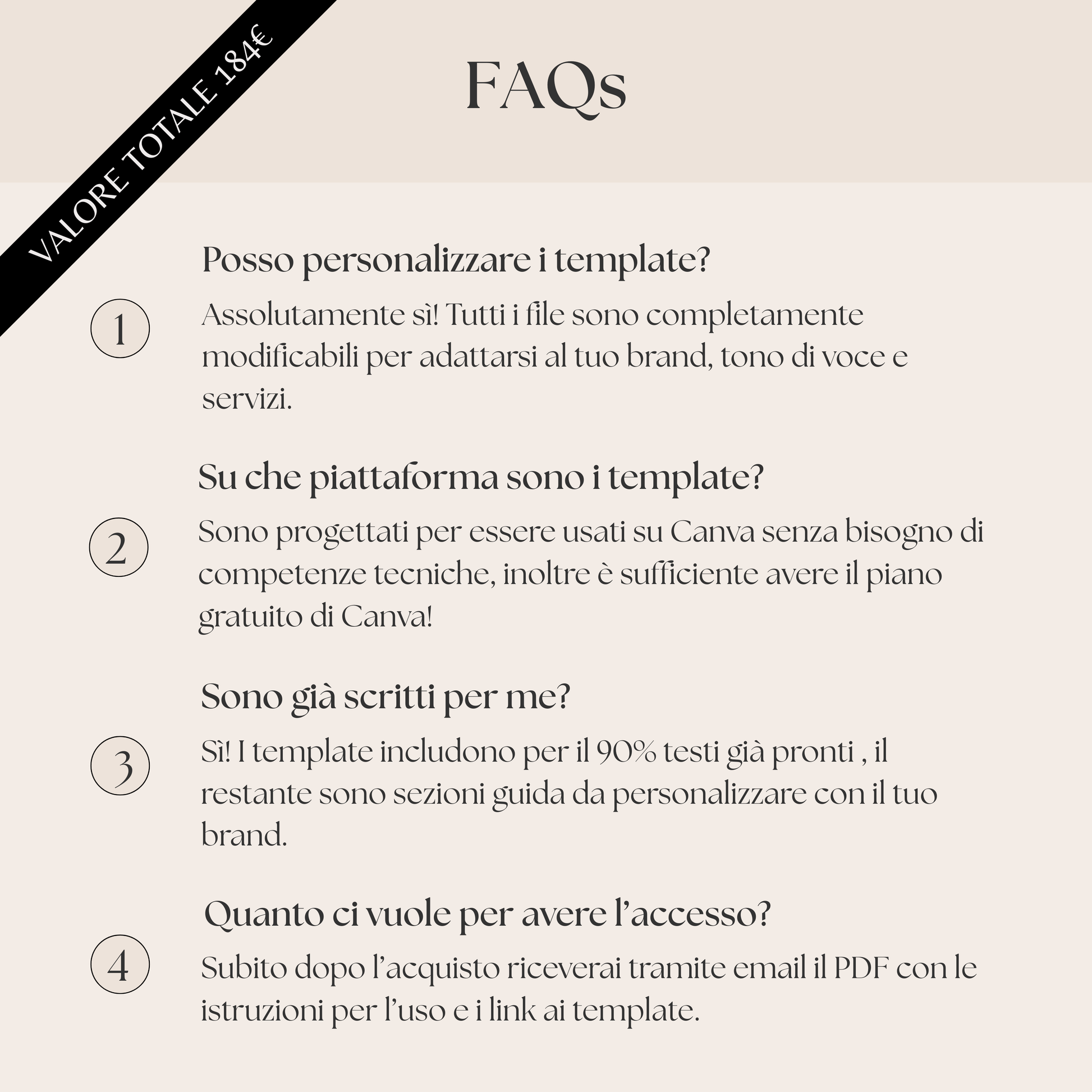 ⚠️ I template sono strumenti di supporto e vanno personalizzati in base ai tuoi servizi e alle tue modalità di lavoro.